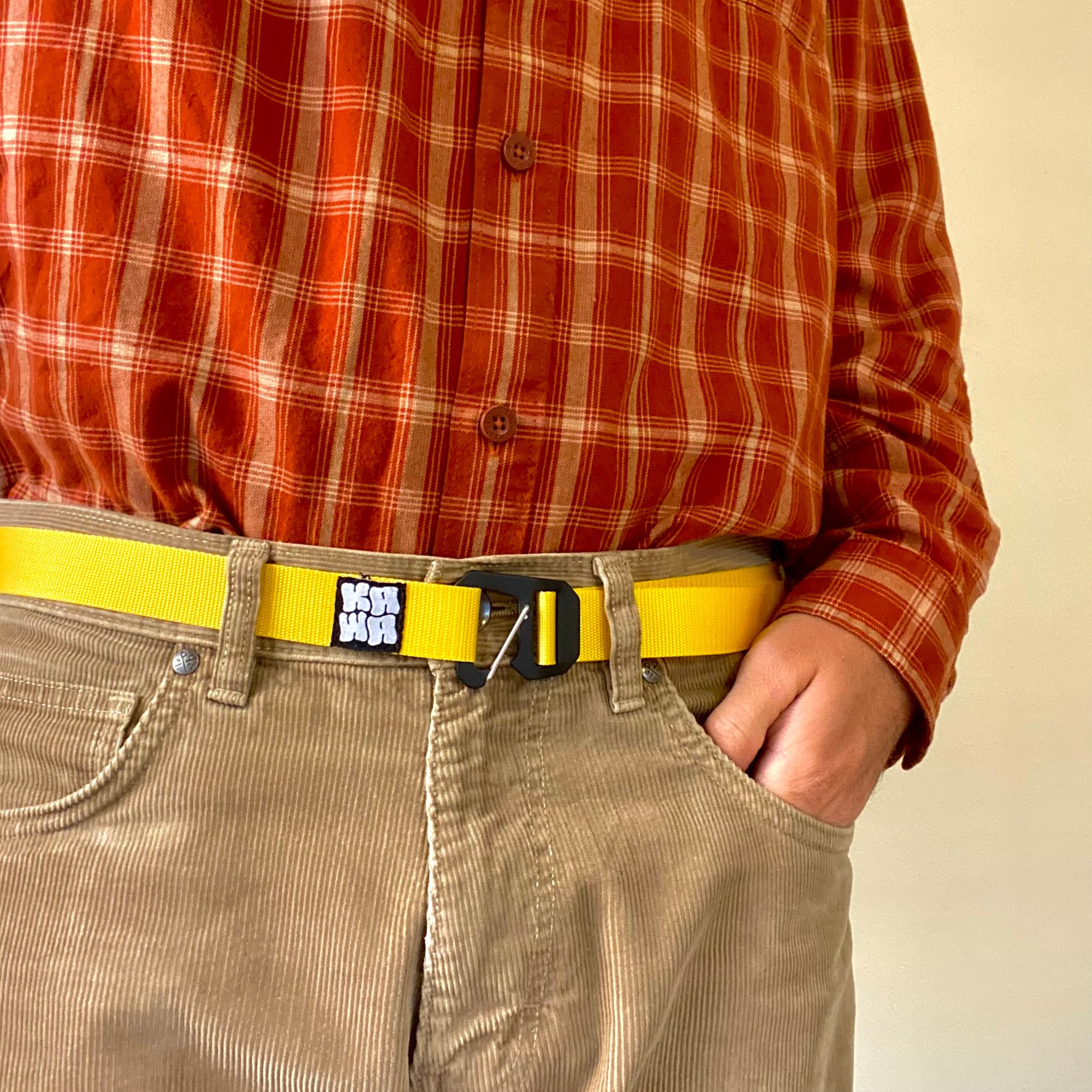 The Kawa belt is a lightweight nylon strap with a durable aluminum hook buckle with a lock gate that stops any accidental detachment. Kawa belts work great as a fashion accessory, but they also can be used anywhere else you would need a strong secure strap. I like to use Kawa belts to hold on my sleeping pad to my my rack while bike touring.
